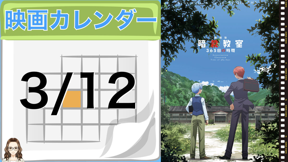 3月12日にまつわる作品は、殺せんせーと3年E組の生徒たちとの1年間を描いたTVアニメシリーズ「暗殺教室」にオリジナルエピソードを加えた総集編『劇場版 暗殺教室 365日の時間』です。