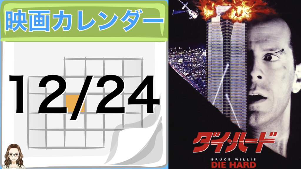 【映画カレンダー】この記事では日付にちなんだ映画を紹介しています。 12月24日にちなんだ映画は、1980年代を代表しさらに主演のブルース・ウィリスの代表作でもある映画『ダイ・ハード』です。